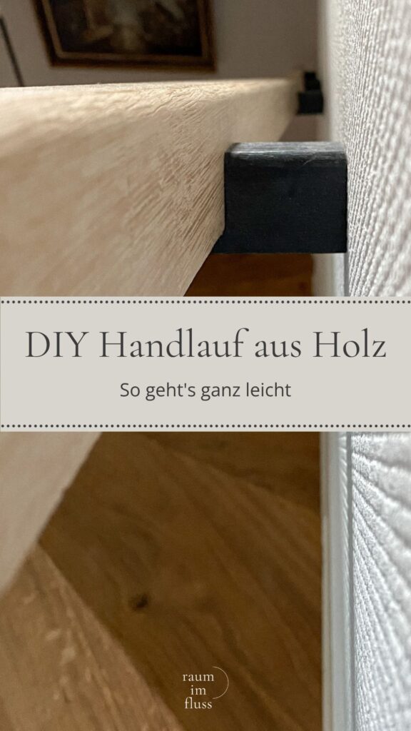 Holz – und ganz besonders Eichenholz – bringt für mich Ruhe in einen Raum. Deswegen findest du bei uns vieles aus Holz. Eichenholz ist hart, warm und altert schön. Unsere Treppenstufen und die Fensterbänke sind aus Eichenholz und der Handlauf sollte dazu passen. Zusammen mit reduzierten Wandhaltern, die übrigens auch selbstgemacht sind, ergibt sich eine ruhige Linie entlang der Treppe.