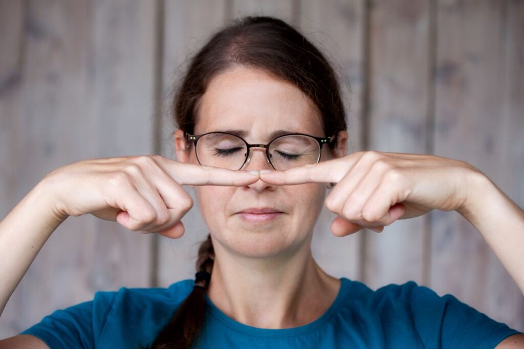 Schließe deine Augen und versuch deine Zeigefinger vor der Nase zusammenzuführen. Sollte dies nicht sofort gelingen, versuch es noch einmal. Diese Übung gelingt dir mithilfe deiner Propriozeption. (Sie ist übrigens auch in meinem Buch als Selbsterfahrungsübung enthalten*.)